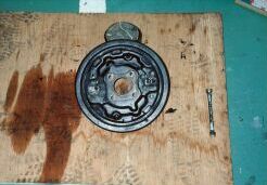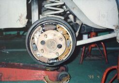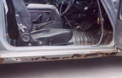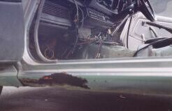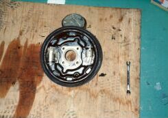 ラジエターとドラムブレーキのみオーバーホールし、とりあえず自走可能な状態で近くの板金屋に持ち込まれました。