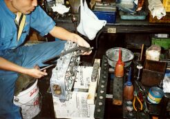 ヘッドの組立作業 ホーニングが終わったブロックを 同日、別の専門業者に持ち込む。