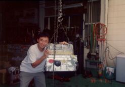 思わず頬ずり 平成11年7月31日 エンジンOH完了 (この時点では工場は倒産していない)