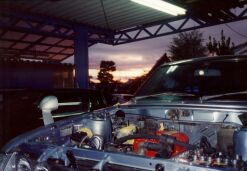 コイン洗車場でミッションボックスを洗う。異様ななりの三人組におそれをなしたのか気がついたら誰もいなくなっていた。